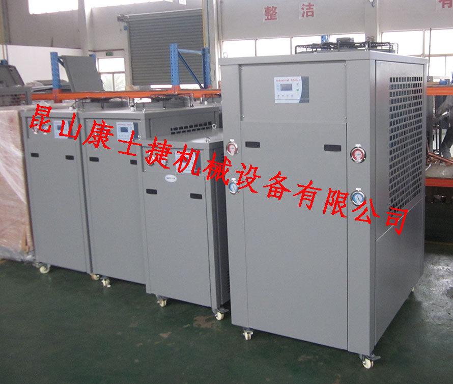 目前工廠使用較多的便是注塑機(jī),塑膠粒經(jīng)加熱溶化后注入模具中,凝結(jié)后,開(kāi)模頂出成型塑膠工件,在連續(xù)生產(chǎn)過(guò)程中有需用對(duì)模具進(jìn)行冷卻,以縮短塑膠凝結(jié)時(shí)間,提高工件尺寸精度,成型質(zhì)量、表面質(zhì)量。而在早期,很多用戶選用冷卻水塔為其降溫,這種冷卻方式只適合在環(huán)境溫度較低的情況下達(dá)到降溫目的,一旦環(huán)境溫度升高,則無(wú)法保證產(chǎn)品精度。因此,就需要使用到冷水機(jī)組