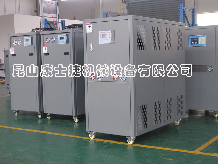 目前工廠使用最多的便是注塑機,塑膠粒經(jīng)加熱溶化后注入模具中,凝結(jié)后,開模頂出成型塑膠工件,在連續(xù)生產(chǎn)過程中有需用對模具進行冷卻,以縮短塑膠凝結(jié)時間,提高工件尺寸精度,成型質(zhì)量、表面質(zhì)量。而在早期,很多用戶選用冷卻水塔為其降溫,這種冷卻方式只適合在環(huán)境溫度較低的情況下達(dá)到降溫目的,一旦環(huán)境溫度升高,則無法保證產(chǎn)品精度。因此,就需要使用到冷水機